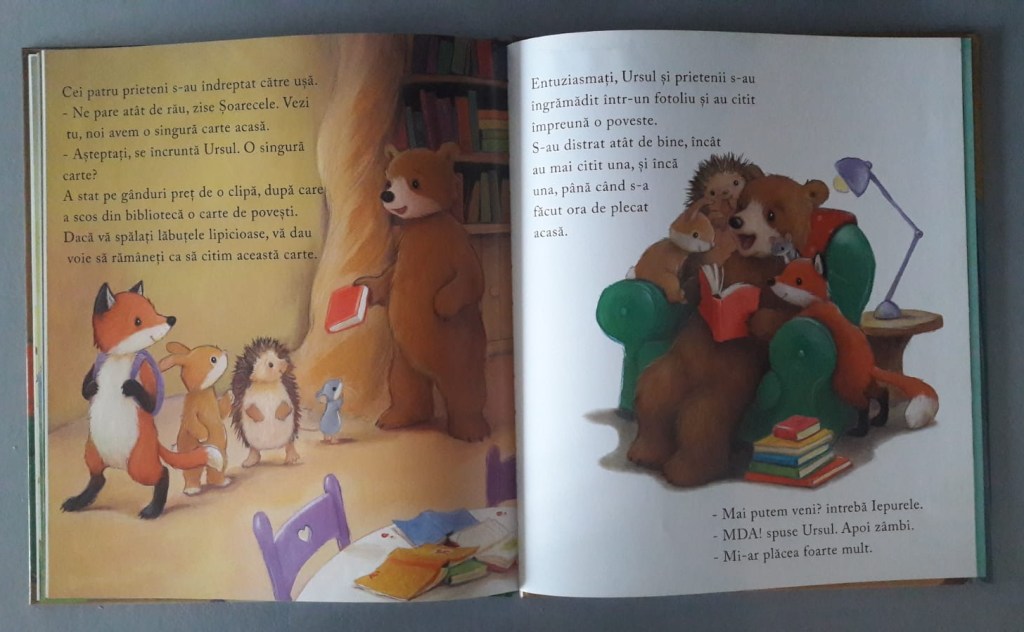 Unde o găsim – Din păcate, am constatat cu tristețe că, în acest moment, Biblioteca Ursului nu se mai găsește la noi. Presupun că există prin unele biblioteci și pot doar să sper că o sa fie reeditată. Până atunci, am descoperit-o pe Amazon în engleză și alte câteva limbi. Tot în engleză, apare ca fiind disponibilă la comandă pe carturesti.ro