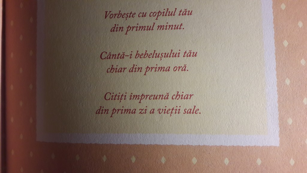 Dincolo de ideea mea, această carte mi se pare un cadou minunat pentru părinți și, în special pentru proaspeți părinți. Este, cred eu, o carte care poate schimba vieți, iar ilustrațiile sunt, desigur, absolut minunate, atât pentru bebeluși, cât și pentru copiii mai mari care, pornind de la ele, pot să-și propună un obiectiv măreț, cum este al nostru, sau pot construi povești. Oricum ar fi, cartea e o comoară care ar trebui, cred eu, să se afle în casa oricărui părinte aflat la început de drum, indiferent dacă e, sau nu, prieten cu cărțile.