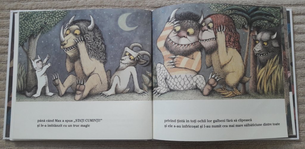 - Regele tuturor sălbăticiunilor ( Maurice Sendak; Editura Arthur) este o carte despre un singur copil, pe nume Max. Nu este despre prietenie și nici despre frați, dar am ales să o includ aici pentru că este o carte despre iubire necondiționată – iubirea necondiționată și nemărginită a mamei, de care are nevoie să fie conștient fiecare copil, mai ales dacă are un frate cu care simte că e nevoit să o împartă pe mama. Cartea este apreciată ca fiind una dintre cele mai bune cărți pentru copii din toate timpurile. Unii părinți s-ar putea să găsească ciudate ilustrațiile, dar vă propun să păstrați o minte deschisă și, eventual, să citiți puțin despre carte. Este, cu adevărat, o comoară.