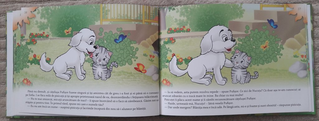 - Pufișor și Nucuța ( Editura AQUILA) – O carte mai puțin cunoscută, cu ilustrații foarte frumoase, care ne prezintă povestea fetiței Sofiei și a cățelușei Pufișor. Aceasta din urmă era obișnuită să o aibă pe Sofia doar pentru ea, dar, în urma unor întâmplări ușor amuzante, ajunge să accepte în familie și o pisicuță drăguță.
