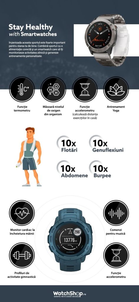 - Unele modele smartwatch au chiar și funcție de plată la terminalele POS – pentru momentele în care e totuși nevoie să ieșim.