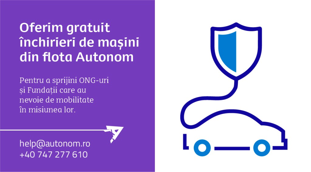 Cred tare că lupta împotriva acestui virus este foarte importantă. La fel de tare cred că dacă sprijinim oamenii care sunt afectați indirect, tot împotriva virusului luptăm și mă bucur mult atunci când observ cum atât de mulți oameni se implică cu tot ce au ei în această luptă. Spre exemplu, Autonom pune la dispoziție pentru închiriere gratuită (timp de trei luni, cu posibilitate de prelungire) mașini din flota din toată țara, pentru acele ONG-uri și fundații care au nevoie de mobilitate în misiunea lor, în lupta împotriva Coronavirusului. De asemenea, au luat toate măsurile de prevenire a răspândirii virusului. Atât mașinile, cât și cheile și documentele mașinii sunt dezinfectate riguros după preluarea de la un client și înainte de a fi predate unui alt client. Găsiți aici orașele în care sunt prezenți și îi puteți contacta la help@autonom.ro, sau la numărul de telefon +40 747 277 610.