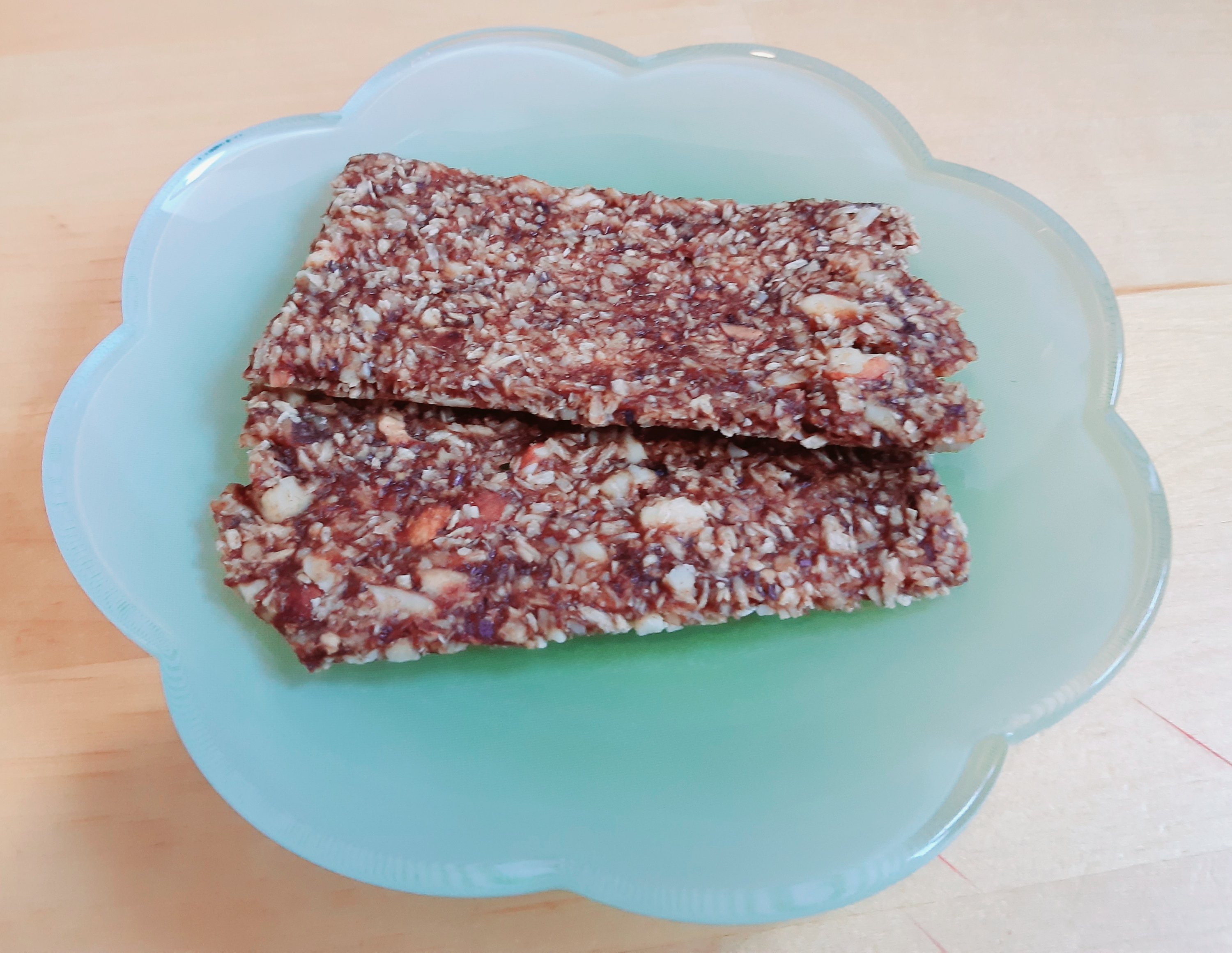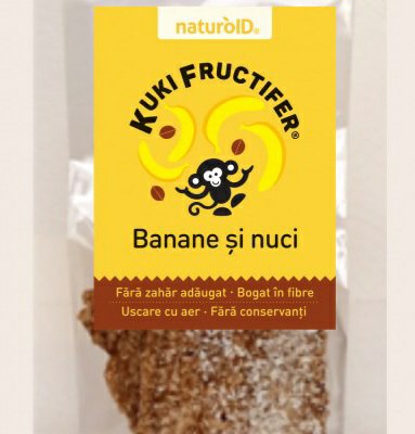 Pentru această dată, noi am ales rodie, portocale, mandarine, grapefruit, mere și morcovi în diverse combinații și, alături de suc, am pus pe o farfurie Kuki Fructifer cu banane și nuci. Acesta este un fel de baton din semințe și fructe preparat prin uscare la aer cald și este un produs românesc, la fel ca toate produsele de pe site-ul Băcănia Tei – cu excepție celor care, prin natura lor nu pot fi produse aici, cum sunt fructele exotice. Gustul e bun, dar depinde, desigur, și de preferințele copilului. În cazul nostru, Tudor a mâncat tot și a mai cerut, iar Maria doar a gustat, presupun că din cauza faptului că nu îi prea plac bananele.