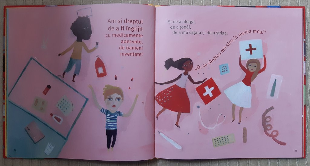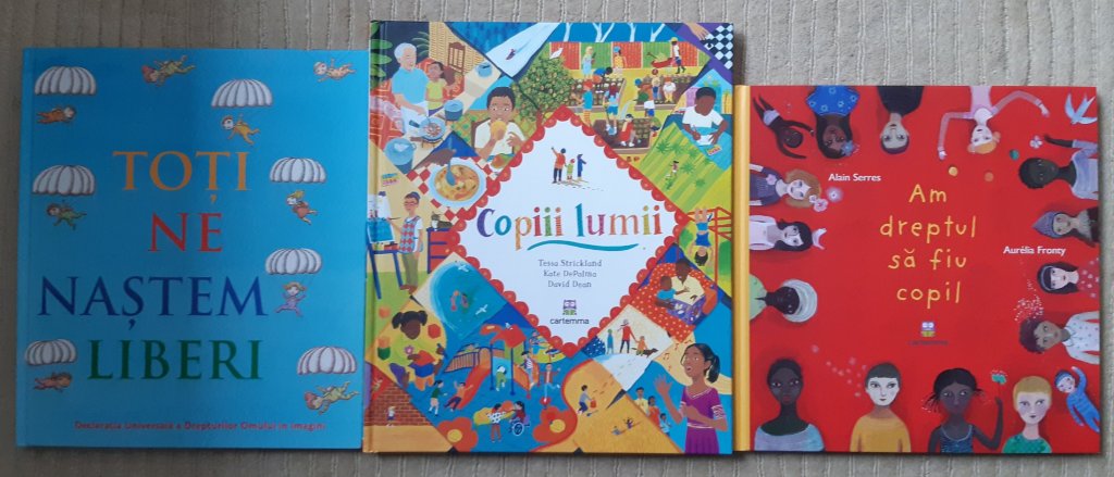 Prima carte despre care vreau să scriu se numește Am dreptul să fiu copil și a apărut la Editura Cartemma în anul 2018. Este construită fix pornind de la drepturile copilului. Are cuvinte puține și ilustrații sugestive. O văd aproape ca pe un manual al drepturilor copilului, dar unul tare frumos. Singura parte care nu mi-a plăcut la ea a fost finalul care îmi pare a fi un mesaj adresat direct adulților. Eu l-aș fi semnalizat ca atare și, strict pentru copii, aș fi încheiat cartea într-o manieră mai pozitivă. Nu cred, totuși, că acest final diminuează în vreun fel valoarea cărții. E important să cunoaștem faptul că au drepturi copiii, e important să știm de ce au aceste drepturi și e important să cunoaștem aceste drepturi. Nu în ultimul rând, sau mai ales, e important ca ei să își cunoască drepturile.