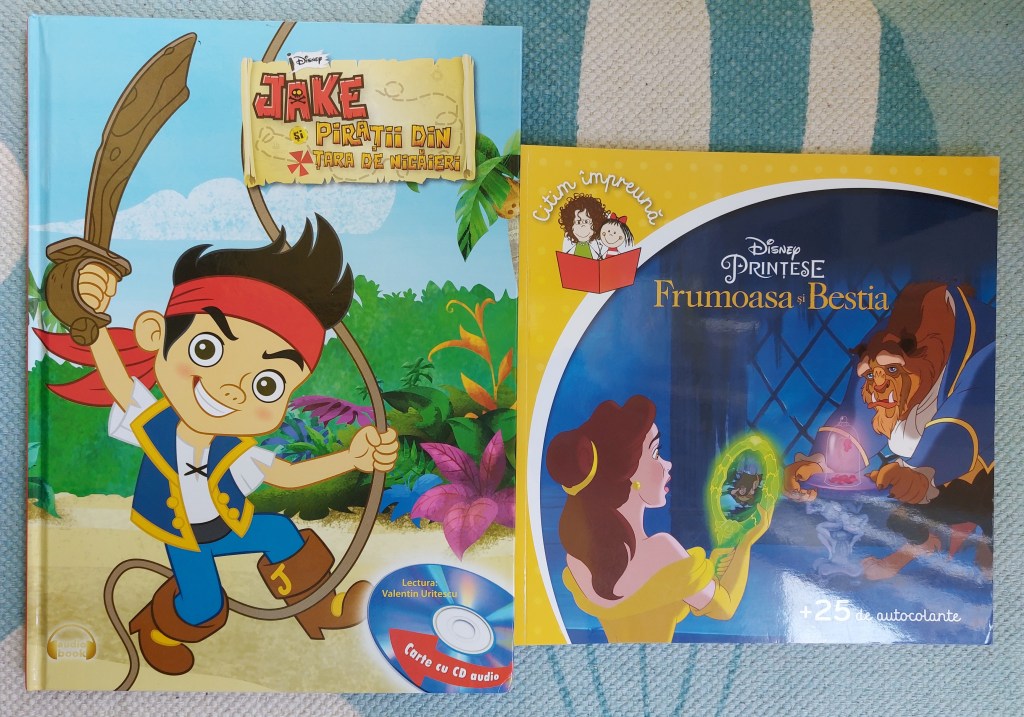 În ceea ce privește cărțile, cele de la Disney (Editura Litera) sunt pentru copii mai mici, cam până în 10 ani. Cea cu pirații are și cd audio, iar cealaltă are autocolante, după cum scrie și pe copertă. Ambele au ilustrații foarte frumoase, ca toate cărțile Disney.