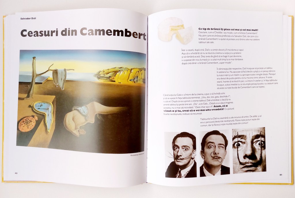Revenind puțin la cartea de mai sus, pentru cei care sunt ca mine, mai puțin inițiați în ale artei , menționez că ne prezintă și mulți artiști celebri, cum ar fi, de exemplu, Salvador Dali. E o comoară cartea. De fapt, sunt o comoară, pentru că sunt două.