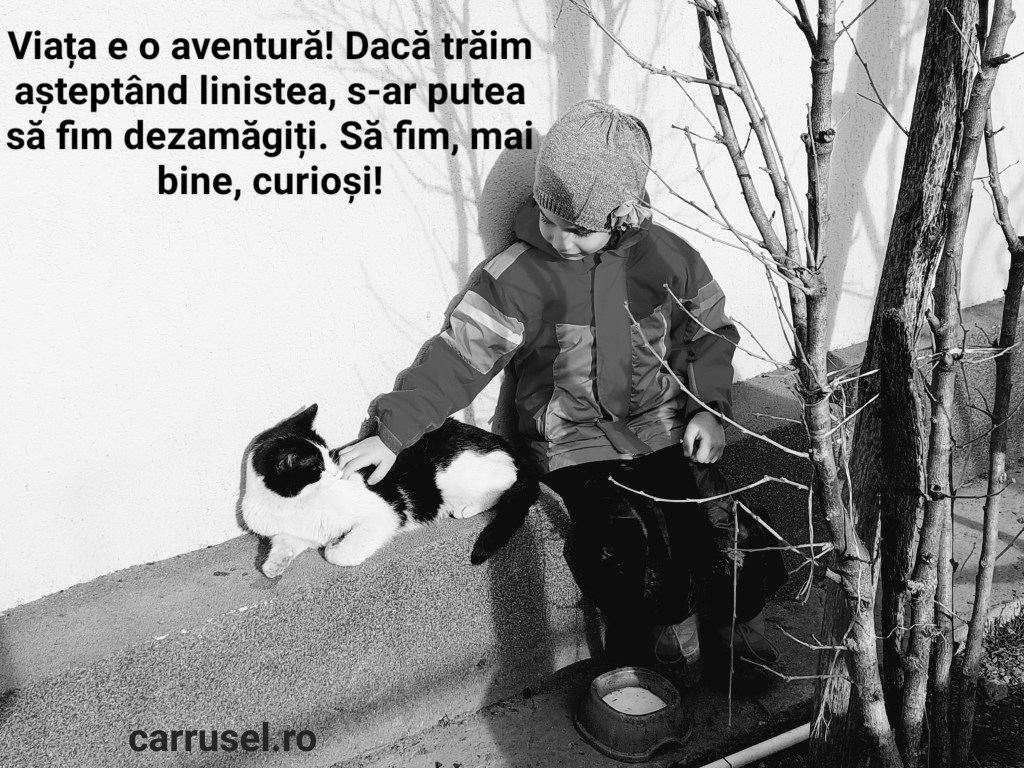 Altfel, așa cum spuneam, viața e o aventură și fiecare dintre noi e actorul principal în viața lui. Să ne petrecem viața așteptând liniștea, s-ar putea să ne aducă doar dezamăgire. Și plictiseală. 🙂 Să trăim viața cu curiozitate, să învațăm din tot ce se întâmplă, să creștem… toate astea sunt cuvinte care au din ce în ce mai mult sens pentru mine. Cuvinte vechi, privite cu alți ochi. Toți psihiatrii și psihoterapeuții renumiți spun că nu experientele pe care le trăim fac diferența, ci felul în care noi ne raportăm la aceste experiențe.