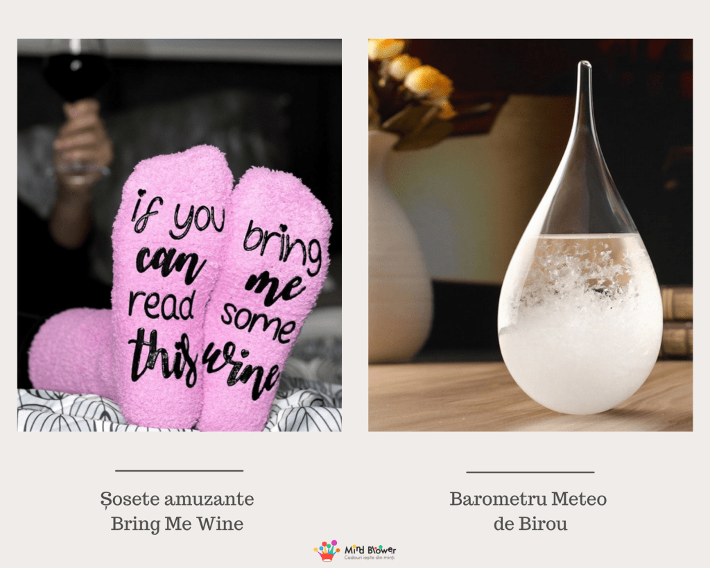 În toate aceste cazuri, putem apela la ajutor și inspirație din exterior. Pe mindblower.ro găsim cadouri aranjate frumos pe categorii, începând de la cadouri pentru femei sau bărbați și până la cadouri pentru mame, tați, bunici sau chiar șefi. Varietatea e foarte mare și pentru toate gusturile, de la cadouri amuzante, cum sunt șosetele de mai jos, până la cadouri elegante si deosebite.