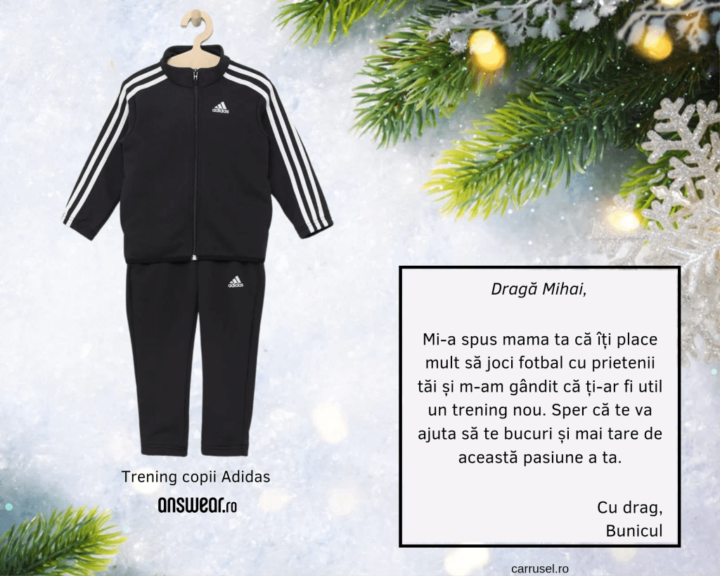 În ceea ce privește aspectul exterior, cel puțin până la o anumită vârstă, cei mici nu vor fi, aparent, interesați de haine și asta-i bine. Totuși, hainele sunt speciale și le putem folosi pentru a transmite mesaje și emoții și mai speciale. Fie că dorim, pur și simplu, să le oferim copiilor haine de Crăciun, fie că facem asta pentru că nu știm ce altceva să le luăm, putem folosi acest prilej pentru a le transmite că sunt speciali, că ei contează pentru noi și, mai ales, că îi vedem; putem să folosim această ocazie pentru a le oferi cheia spre lumi minunate în care toate dorințele se îndeplinesc.