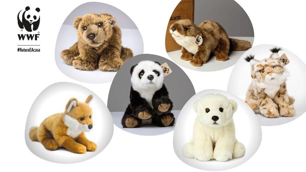 Jucăriile din pluș nu sunt doar pentru copii, sunt și pentru îndrăgostiți. Imi amintesc că și eu am primit astfel de cadouri în trecut. Atunci nu știam prea multe despre protejarea planetei, dar cred că m-aș fi bucurat dacă aș fi primit un animăluț care să fie simbolul faptului că am adoptat virtual un animal sălbatic adevărat. Sunt sigură că asta m-ar fi făcut să mă simt specială. Desigur, pe vremea când primeam eu plușuri, nici nu știu dacă era disponibilă o așa opțiune. Cert e că există azi și e foarte simplu să facem un astfel de cadou. Cum? Prin intermediul WWF ROMÂNIA. Mai exact, intrăm în zona dedicată adopției de animale, alegem o vulpe, un lup, un râs sau un alt animal dintre cele prezentate și plasăm comanda. Banii de la noi vor fi folosiți pentru îngrijirea și protejarea animalelor, iar noi vom primi acasă un pluș, dar nu orice pluș, ci unul cu umplutură 100% din peturi reciclate. Minunat, zic eu. Mai ales că toate sunt super draguțe, după cum se vede și în fotografia de mai jos.