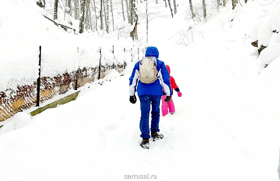 Nesiguranța asta nu ne-a împiedicat să ne bucurăm de peisajul superb. Era atât de liniște și atât de frumos, cum n-am mai văzut de mult timp, iar pentru copii era o premieră. Se jucaseră mult în zăpada de la Dino Parc, dar aici era și mai multă. Ne-am dat seama, încă din acele momente, că va fi meritat efortul, chiar și dacă nu am fi reușit să vizităm peștera.