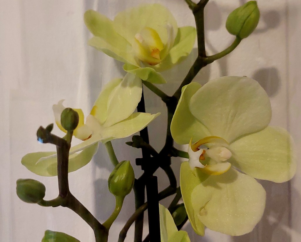 * A doua fotografie ( nu foarte reușită pentru că încă n-am învățat să fac poze bune atunci când nu mă ajuta lumina) are și ea rolul ei. Am primit această orhidee și am mari emoții cu ea pentru că, deși îmi plac florile, pe ea nu prea știu să o îngrijesc. Am mai avut una la un moment dat și nu a trăit prea mult. Sper ca de data asta să mă descurc mai bine, că tare frumoasă e. Ar fi chiar drăguț să-i fac încă o poză (mai bună) anul următor pe vremea asta. Cert e că vreau să-mi amintesc și de ea. 🙂