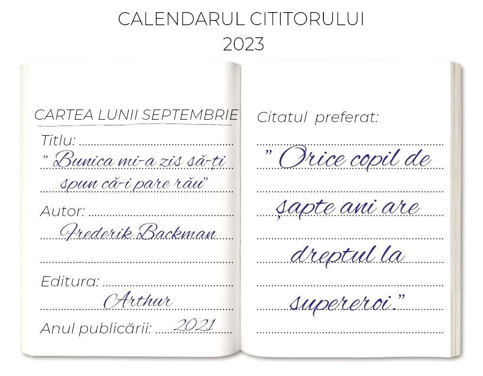 Am vrut să scriu lunar doar despre carti care au autori diferiți, dar, cumva, nu-mi iese. Dintr-un motiv pe care nu-l pot explica în totalitate, luna asta am ales să recitesc o carte pe care am citit-o prima dată la începutul anului. Ma rog, faptul că o recitesc nu-i chiar așa de ciudat. Mai fac asta uneori, dar, totuși, e ciudat că am ales să fac asta deși a trecut atât de puțin timp de când am citit-o prima dată și deși multe alte cărți așteaptă nerăbdătoare ca eu să le descopăr. Iată, însă, că eu am citit din nou Bunica mi-a zis să-ți spun că-i pare rău și, spre surprinderea mea, am citit-o cu același entuziasm ca prima dată și cu o sete incredibilă. Am simțit că mă ajută, că învăț din ea lucruri prețioase. Așadar, nu puteam să nu o aleg pentru luna septembrie, chiar dacă am mai scris anul acesta despre o altă carte al cărei autor e tot Fredrik Backman – Un bărbat pe nume Ove. Apropo de aceasta din urmă, mi se pare minunat că fix azi a apărut și filmul, pe HBO Max. Un film pe care mi-am propus să-l văd nu pe bucăți, cum fac de obicei, ci în mod clasic, așa cum orice film bun ar trebui privit.
