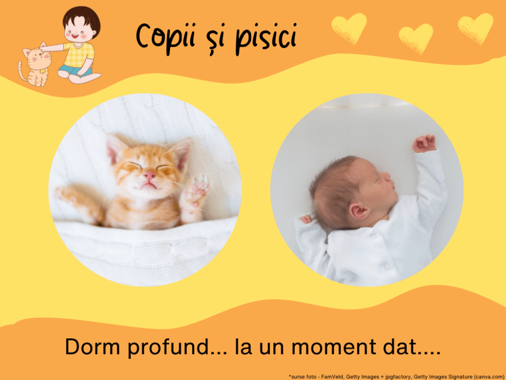 În concluzie, nopțile cu pui, fie ei de om sau de pisică, sunt grele și pot fi grele chiar și când puii au mai crescut. Desigur, când vorbim despre bebeluși alăptați, ei s-ar putea să câștige pentru că e aproape imposibil să înlocuim mama, care-i și sursă de hrană, pe când, cu pisica nu-i musai să stea același om mereu. Apoi, pisicile devin, totuși, independente mult mai devreme, deși asta nu înseamnă că devin și mai înțelegătoare pentru că, spre exemplu, ora de masă rămâne oră de masă, chiar și dacă tu ai ieșit în oraș cu prietenii, ai ajuns târziu acasă și-ai vrea să mai dormi. Plus că, se pare, cel mai confortabil loc rămâne, atât pentru copii, cât și pentru pisici, propriul nostru pat sau chiar trup. Prin urmare, n-aș putea să să spun, la acest moment, cine câștigă confruntarea. La fel cum nu pot spune nici de ce, atunci când pisica sau copilul adorm în sfârșit, în loc să ne punem și noi la somn, îi privim fermecați, de parc-am fi în transă și ne urnim din loc doar ca să facem o poză.