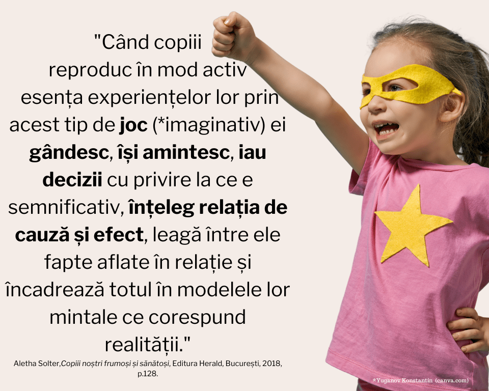 Ei bine, răspunsul e mai simplu decât credem. Eu am scris despre el în urma cu ceva timp și recent l-am (re)descoperit, cu uimire și bucurie, într-un din cele mai frumoase cărți de parenting citite de mine. Cartea se numește Copiii noștri frumoși și sănătoși.Cum să te vindeci prin joc, râsete și lacrimi, este scrisă de Aletha Solter și apărută la Editura HERALD, iar soluția e să ne jucăm cu copiii. Da, jocurile de rol în care noi, oamenii mari, ne transformăm în răufăcători îi ajută pe copii să fie pregătiți pentru situații dificile fără să-i sperie. Iar eu mă bucur mult pentru că am trăit acea întâmplare din tramvai. A fost o oportunitate pentru o discuție interesantă cu copiii și, în plus, mi-a adus aminte că nu ne mai jucaserăm de mult timp în felul ăsta și era cazul să reîncepem. Pentru că, da, copiii au nevoie să le reamintim periodic astfel de lucruri.