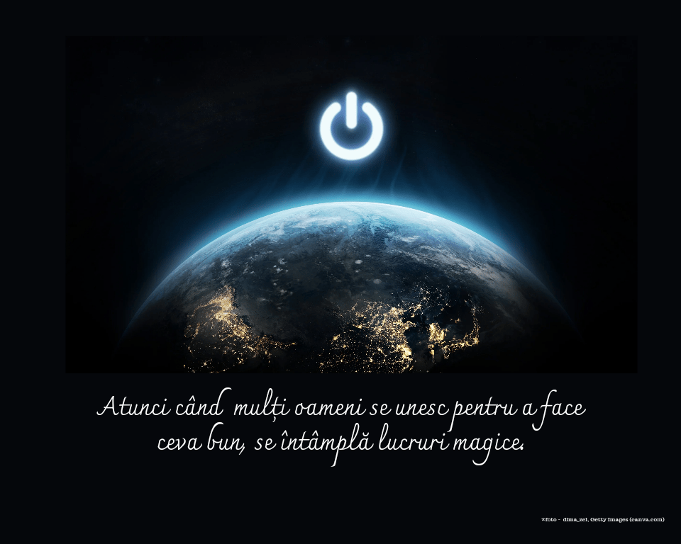 Cum spuneam, într-un articol scris în perioada sărbătorilor de iarnă, eu cred că atunci când mulți oameni se unesc pentru a face ceva bun, se întâmplă lucruri magice. Iar noi avem, toți, oportunitatea să facem magie împreună, în timp ce ne oferim nouă și/sau celor dragi momente frumoase. Cum anume? Alegând să fim împreună, fără stimuli artificiali, în timp ce stingem lumina cu ocazia Orei Pământului.