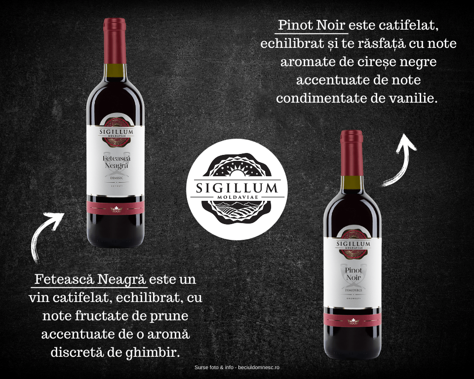După cum am spus, relația mea cu vinul e una destul de instabilă, lucru care nu mă face să fiu o prea bună cunoscătoare a secretelor acestuia. Totuși, cum chiar și amatorii au nevoie uneori de vin – de fapt, istoria ne arată că fără vin nu se poate – vă spun că, din punctul meu de vedere, vinul cel mai bun nu există cu adevărat; fiind o băutură disponibilă în atât de multe variante, alegerile fiecăruia depind de gusturile personale, de contextul în care este consumat vinul, de preparatele cu care este asociat și chiar și de oamenii alături de care-l bem. Altfel, la modul general, vinul cel mai bun s-ar putea să fie acela produs pe plan local, în acest caz în România, iar azi atenția mea se îndreaptă, așa cum v-ați dat deja seama, spre Sigillum Moldaviae de la Beciul Domnesc, vin care ni se dezvăluie în mai multe sortimente, după cum urmează: Fetească Neagră, Pinot Noir, Rosé, Busuioacă de Bohotin, Muscat Ottonel, Tămâioasă Românească, Fetească Regală & Sauvignon Blanc și Fetească Albă. Dintre acestea, Feteasca Neagră, vinul primit de mine spre testare, se remarcă prin faptul că este un vin catifelat, echilibrat, cu note fructate de prune și mure accentuate de o aromă discretă de ghimbir. El provine din podgoria Cotești și este alegerea firească atunci când vorbim despre mesele festive sau despre mesele obișnuite pe care dorim să le transformăm în unele deosebite, potrivindu-se de minune cu carnea de porc, vită sau oaie.